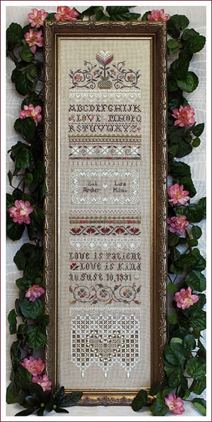 Love is Patient VS132Elegant and timeless as the words of Saint Paul, yet full of modern touches. Stitched on 28ct Raw Cashel, the finished size is 20.4" x 4.6". If you order Specialty Items, we will make you a kit. We are sold out of the branded Victoria Sampler Accessory Packs, but can make our own using the exact same threads from our shop. Designer: Victoria Sampler