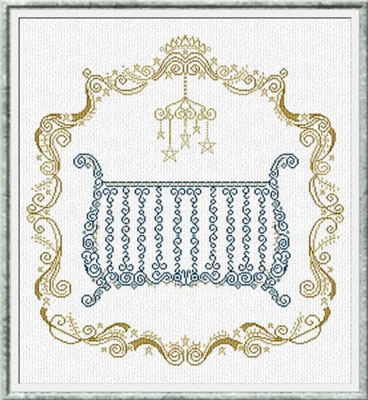 Little Prince or Princess AAN196An ornate crib for a precious child. Stitched on 28ct White Jobelan, in blue or pink, the finished size is 17" x 18". Designer: Alessandra Adelaide Needleworks